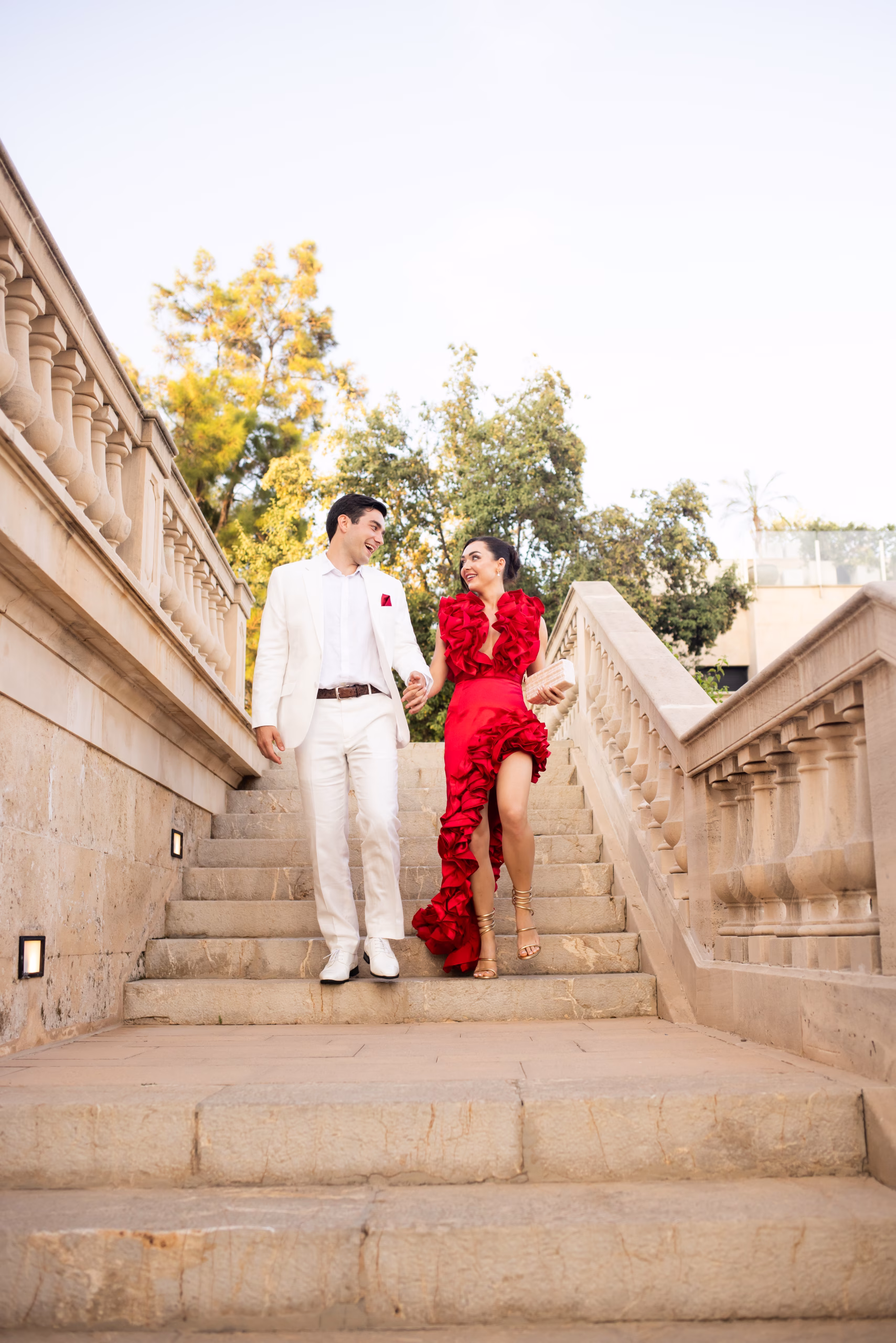 As the sun dipped below the horizon, the couple welcomed their guests with Mediterranean flavors and the sparkle of fine Cava. Friends and family mingled on the elegant terrace, enjoying not just the cuisine, but the kind of conversations and laughter that mark the beginning of something meaningful.