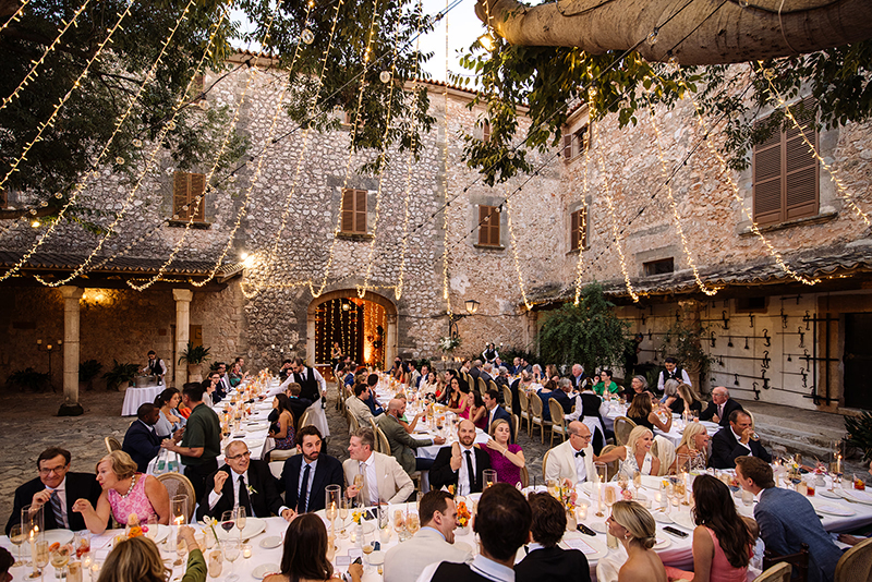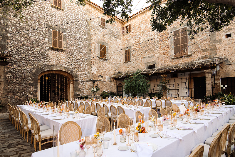 It is a lovingly restored finca (traditional Mallorcan country house) that showcases the perfect blend of traditional architecture and modern elegance. Upon arrival at the venue, you will be immediately enchanted by its authentic stone walls, wooden beams and extensive gardens. The serene ambiance and picturesque views create a serene and enchanting atmosphere, setting the stage for an unforgettable wedding.
